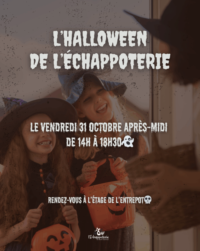 Venez participez à notre grande journée d’Halloween à l’Entrepôt de 14h à 18h30 ! Une journée d’ateliers en libre accès sur le thème d’Halloween🕷️🎃👻 N’hésitez pas à venir déguisé, un concours du meilleur déguisement d’Halloween est ouvert (Repas pour 2pers. à l’Entrepôt à gagner)🤭😈